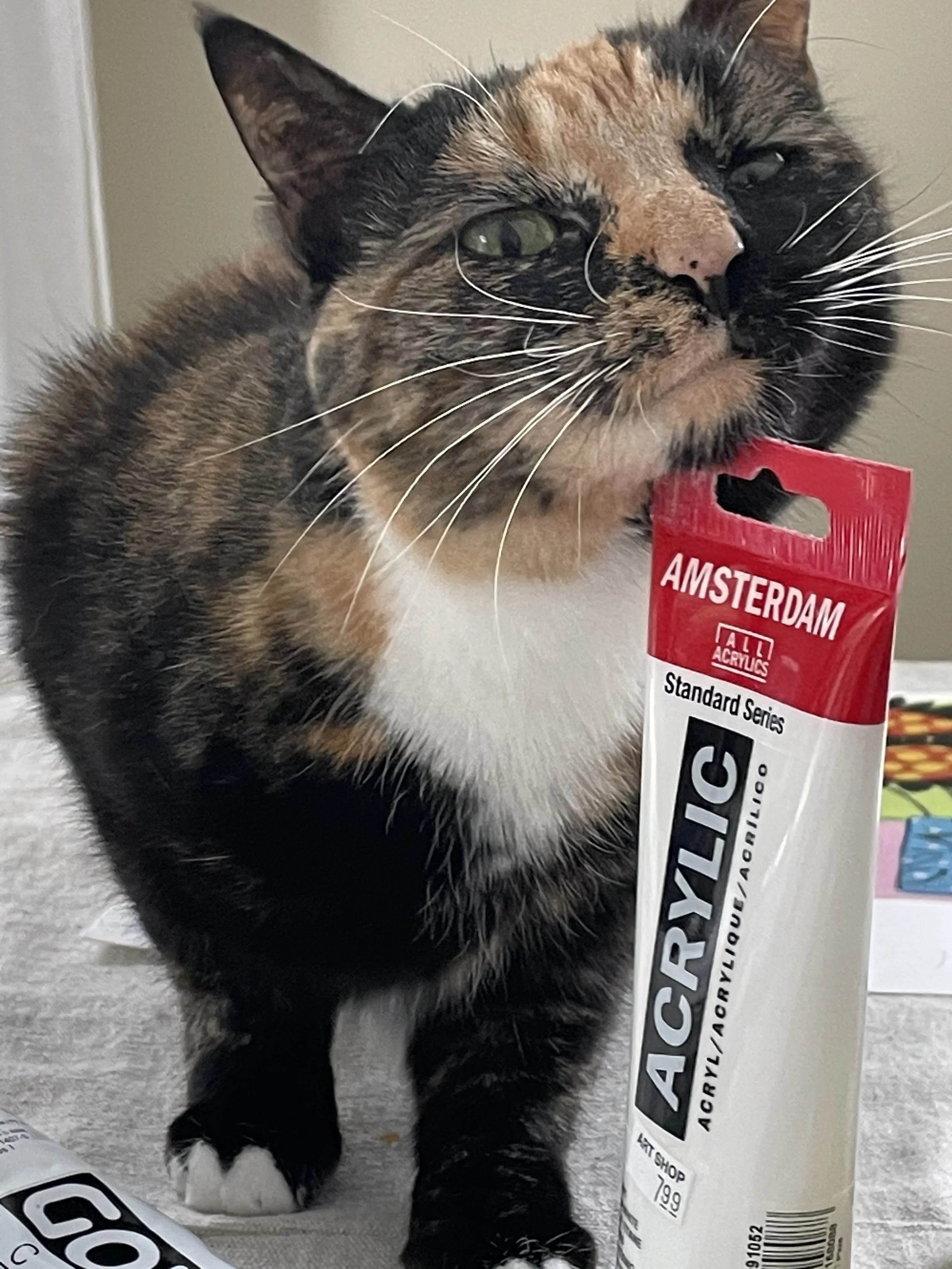 My studio is my happy place. I have a lot of inspiration surrounding me here in Maine, including 3 cats that like to get on top